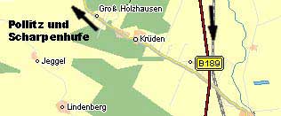 Die Fahrzeit beträgt ca. 2,5 Stunden und ist zeitlich, sowie auch vom Schauen her sehr günstig. Als Alternative ist die Anfahrt über die A2 zu nennen. An der Abfahrt Magdeburg Zentrum (70) die A2 Richtung Stendal verlassen und die Bundessstrasse B189 folgen. Durchfahren Sie Wolmirstedt, Colbitz, Dolle und Buchholz, sowie Stendal, Ziegenhagen und Erxleben. An der Kreuzung mit der Ausschilderung rechts Seehausen, links Gartow/Bömenzien verlassen sie die B198 nach Gartow/Bömenzien. Sie durchfahren Die Orte Vielbaum und Krüden und erreichen dann Scharpenhufe und Pollitz. Für abendteuerlustige Reisende empfehlen wir die Anreise von Berlin über Brandenburg, Ratenow, Tangermünde nach Stendal und weiter auf Bundesstrasse B189 Richtung Pesrleberg wie eben beschrieben. Hinweise: Es empfiehlt sich, den Verkehrsregeln zu folgen. Die Straßen sind kurvenreich, führen durch viele Waldgebiete und Wildwechsel ist durchaus üblich - ebenso wie die Behinderung durch landwirtschaftliche Fahrzeuge.